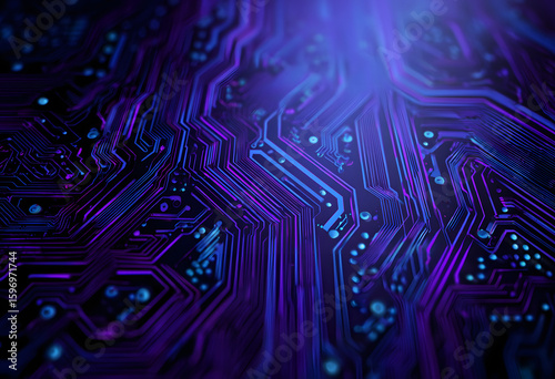 Abstract blue and purple tech circuit board design, elegant, pattern