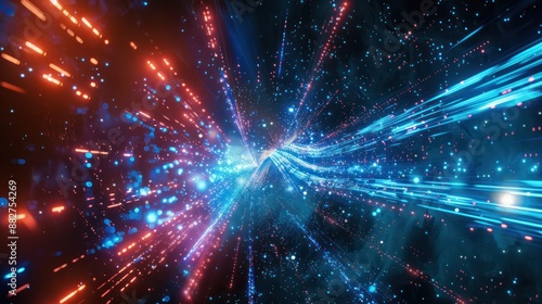 Abstract Blue and Red Lights in Space