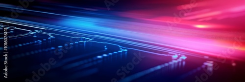 Abstract Blue and Red Technology Background with Moving Light Streaks and Data Visualization