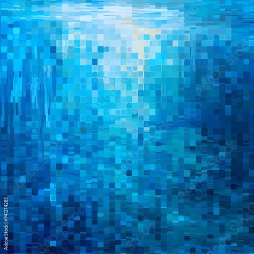 Abstract blue and white mosaic pixel pattern