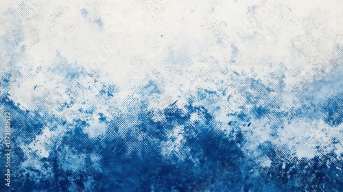 Abstract blue and white textured painting resembling a serene sky or ocean.