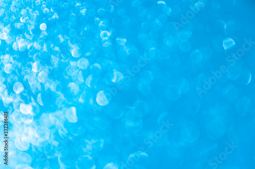 Abstract blue background with bokeh. Gradient glare from left to right. Horizontal background.