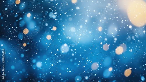 Abstract Blue Background with Falling Snow and Bokeh Lights