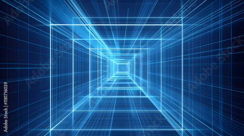 Abstract blue background with glowing geometric lines. Modern blue gradient square shape design. Futuristic technology concept. Suit for brochure, corporate, website, poster, banner, cover modern