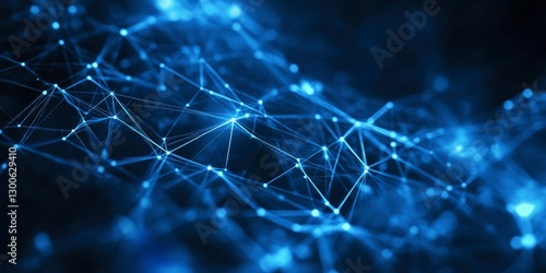 Abstract blue background with glowing lines and dots forming an intricate network of connections, symbolizing technology or digital communication