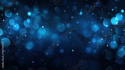 Abstract Blue Bokeh Background: Celestial Lights and Glimmering Particles