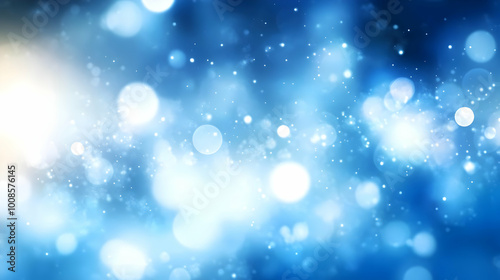 Abstract Blue Bokeh Background with Glowing Lights and Sparkling Particles
