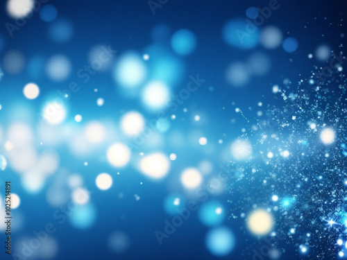 Abstract blue bokeh background with shimmering lights and sparkles creating an ethereal atmosphere