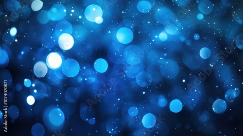 Abstract blue bokeh light sparkles producing a magical and dreamy backdrop with glittering light effects