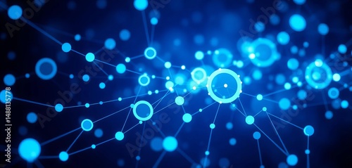 Abstract blue circles, glowing, interconnected nodes forming a digital tech background, abstract, illustration