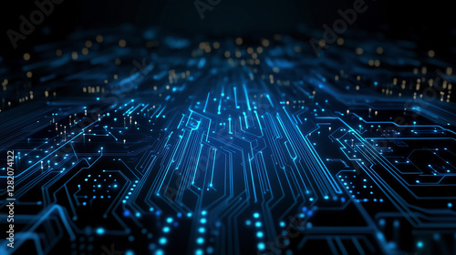 Abstract blue circuit board background with glowing elements, a technology and computer concept. Vector illustration design. Copy space, high quality, black background