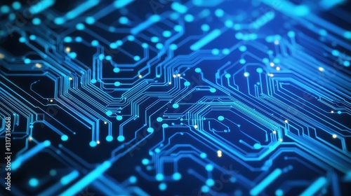 Abstract Blue Circuit Board Design with Neon Light Effects