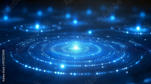 Abstract Blue Circular Light Trails Radiate Outward with Soft Focus Background Bokeh
