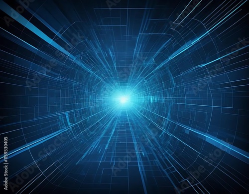 Abstract Blue Digital Tunnel Representing Futuristic Technology