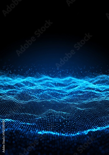 Abstract Blue Digital Wave Background Glowing Particle Field