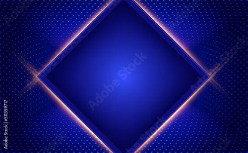 Abstract blue dot lines shapes wall vector background with square shining banner