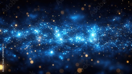 Abstract blue energy flow, cosmic dust, dark background, digital art, website banner