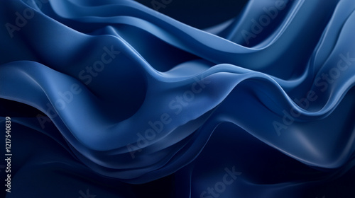 Abstract Blue Fabric Background, Elegant, fluid waves in varying shades of blue on a smooth backdrop