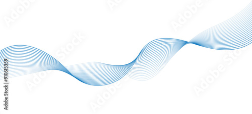 Abstract blue fading linear wave on white background. Futuristic dynamic motion concept. Flowing wavy lines pattern. Technology gradient backdrop. Suit for website, cover, banner, brochure, flyer