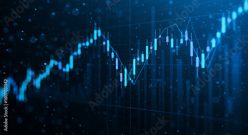 Abstract blue financial chart displaying upward trend, representing stock market growth and economic analysis.