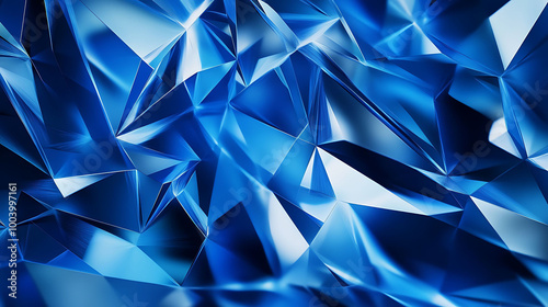 Abstract blue geometric background with sharp and angular shapes, creating a dynamic and modern design.