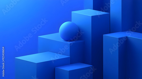 Abstract blue geometric shapes with a sphere on top of one of the cubes.