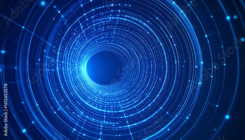 Abstract Blue Glowing Circular Tunnel of Digital Information and Data Flow