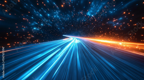 Abstract blue glowing flowing lines technology background