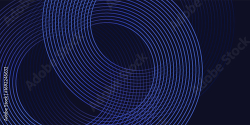 Abstract blue glowing geometric lines on dark blue background. Modern shiny blue circle lines pattern.