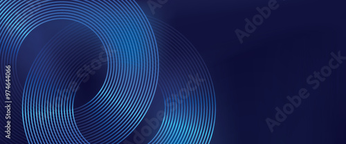 Abstract blue glowing geometric lines on dark blue background. Modern shiny blue circle lines pattern. Futuristic technology concept.