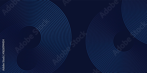 Abstract blue glowing geometric lines on dark blue background. Modern shiny blue circle lines pattern. Futuristic technology concept. Suit for cover, poster,