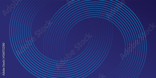 Abstract blue glowing geometric lines on dark blue background. Modern shiny blue circle lines pattern. Futuristic technology concept. Suit for cover, poster, banner, brochure, header, website