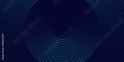 Abstract blue glowing geometric lines on dark blue background. Modern shiny blue circle lines pattern. Futuristic technology concept. Suit for cover, poster, banner, header, website.