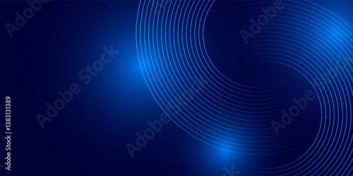 Abstract blue glowing geometric lines on dark blue background. Modern shiny blue circle lines pattern. Futuristic technology concept. vector eps10