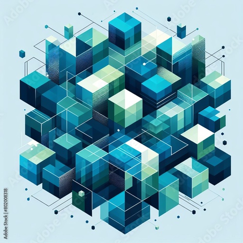 Abstract blue green geometric background, vector. Abstract green blue geometric vector background, cube pattern Illustration vector Generative Ai