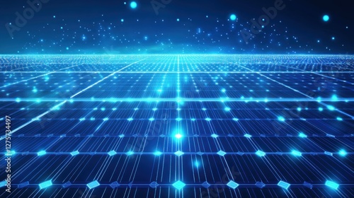 Abstract blue grid pattern with glowing nodes, representing digital network or data flow.