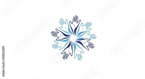 Abstract Blue Hands Forming a Circular Collaborative Design