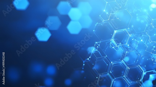 Abstract Blue Hexagon Network Pattern with Glowing Lines and Bokeh