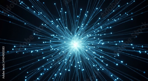 Abstract Blue Light Burst Background With Glowing Particles And Dynamic Lines