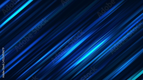 Abstract blue light trails in the dark, motion blur effect background. dark green and blue color, Diagonal Light Technology with floor wall metal texture soft tech background