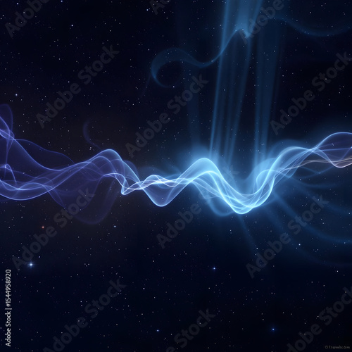 Abstract Blue Light Waves and Particle Trails on a Dark Starry Background – Digital Flowing Lines Representing Sound, Data, Energy, or Sci-Fi Concepts