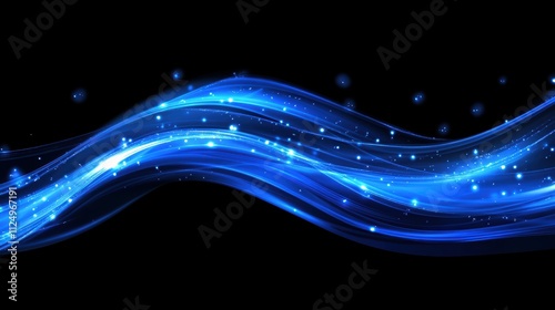 Abstract Blue Light Waves with Sparkles on a Dark Background