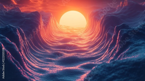 Abstract blue lines, iridescent design, 3d render, Generative AI