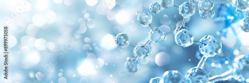 Abstract blue molecular structure background with light bokeh effects, ideal for scientific research and medical innovation.