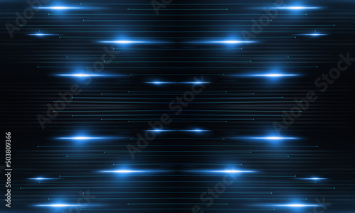 Abstract blue neon background with lines and rays, data center, speed of light, data transfer. Neon light, blue, red, light flash.