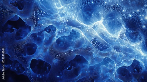 Abstract blue neon fluid texture with organic patterns and glowing highlights