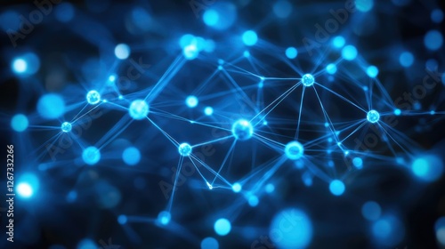 Abstract blue network connection, glowing nodes, dark background, technology concept, website banner