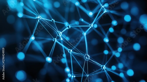 Abstract blue network nodes, connections, dark background, digital tech concept