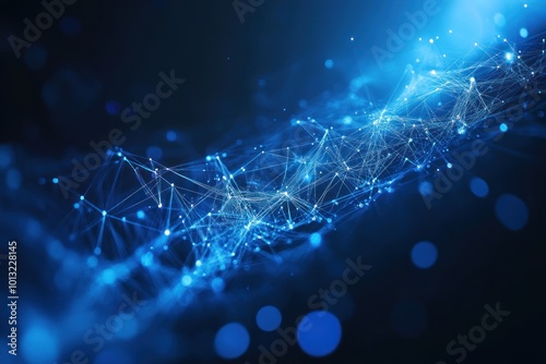 Abstract Blue Network of Connected Lines and Dots - Digital Network and Technology Background Illustration.