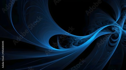 Abstract blue on black background texture. Dynamic curves ands blurs pattern. Detailed fractal graphics. Science and technology concept.